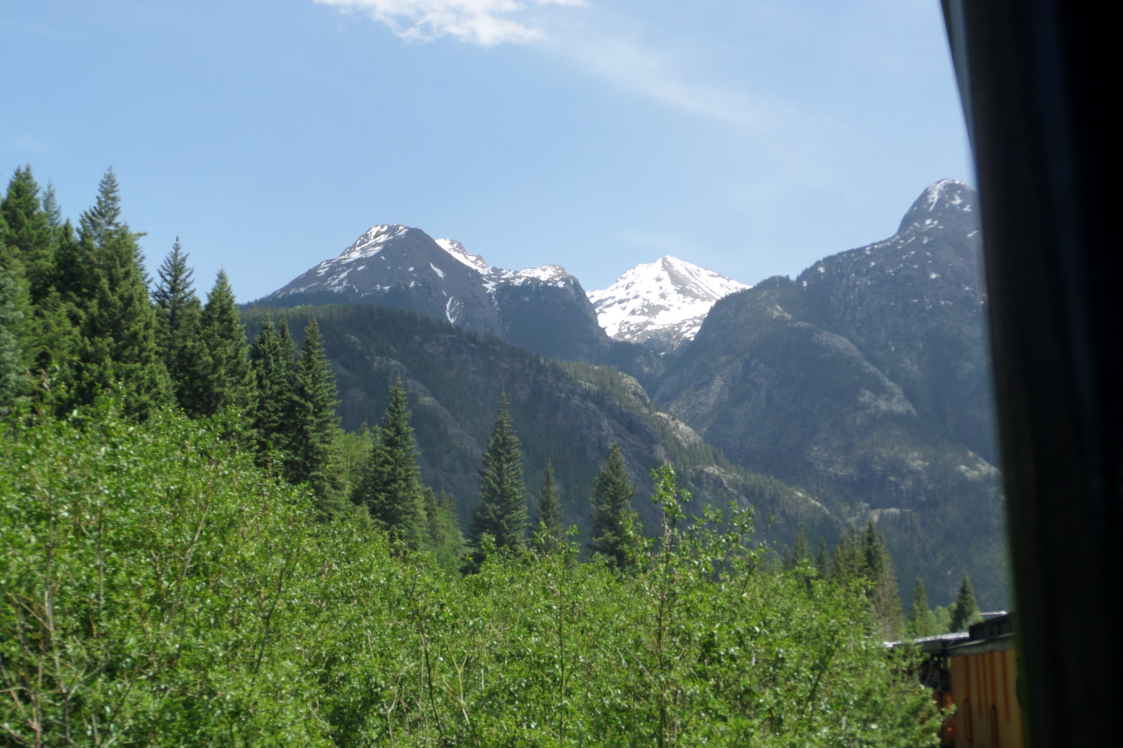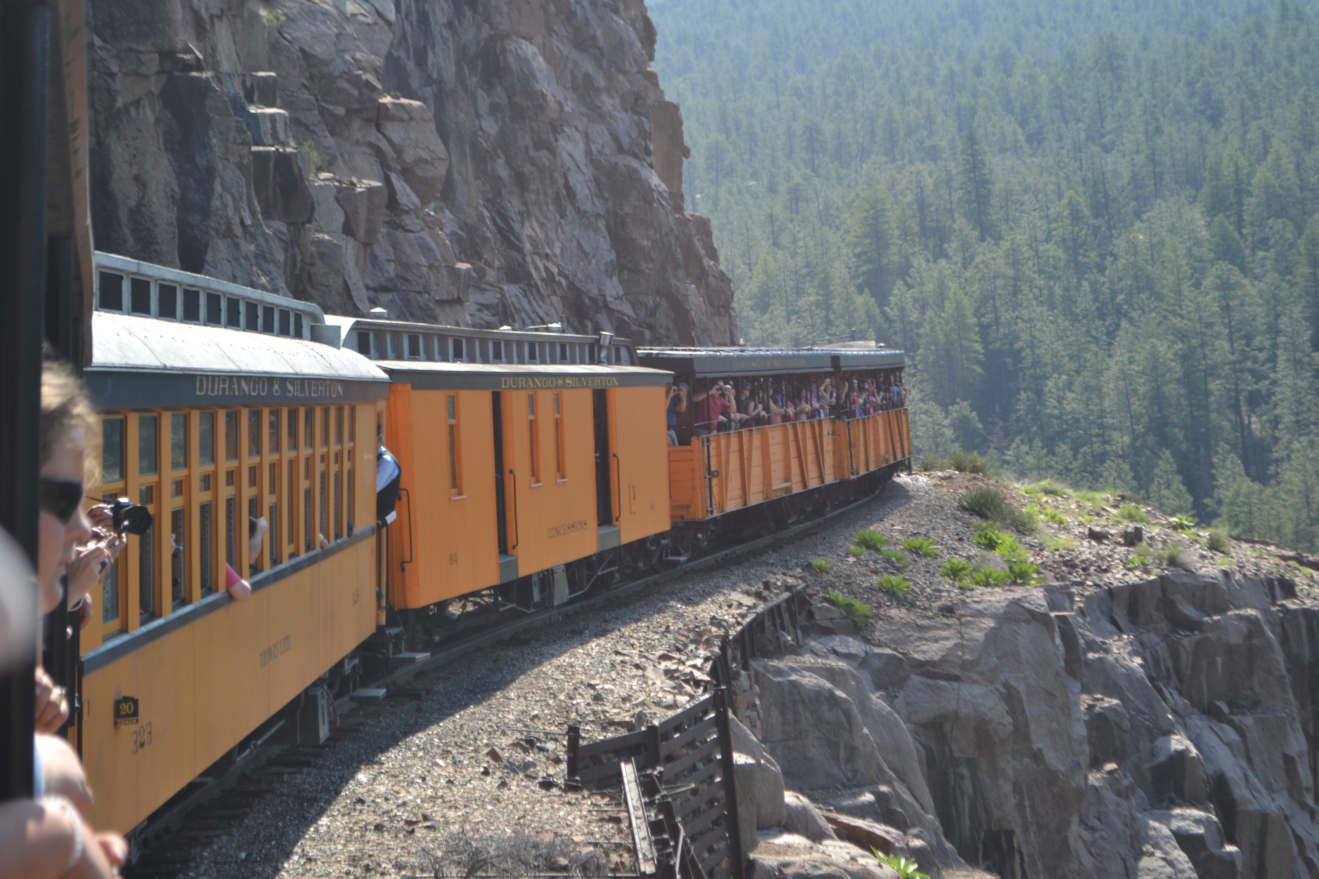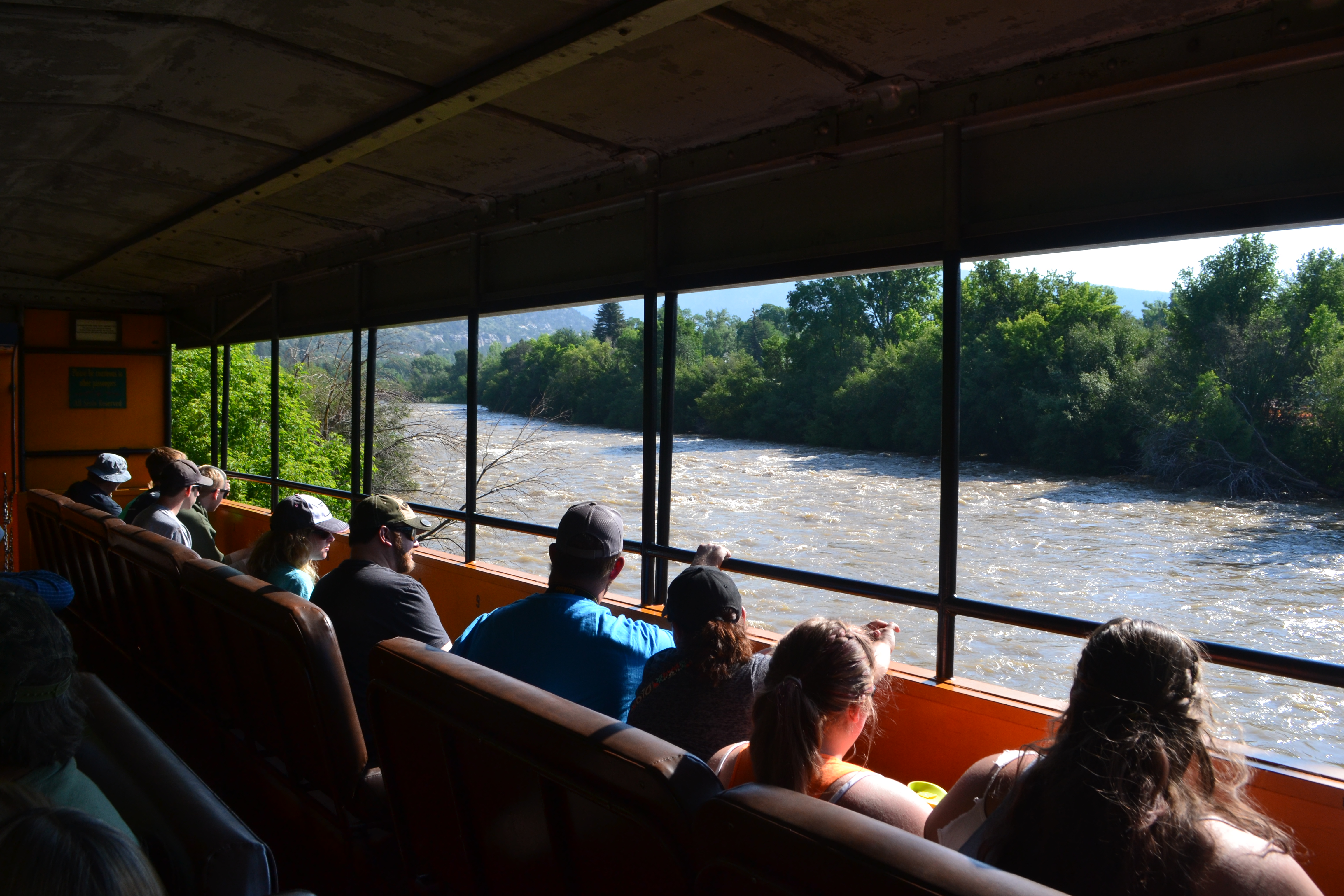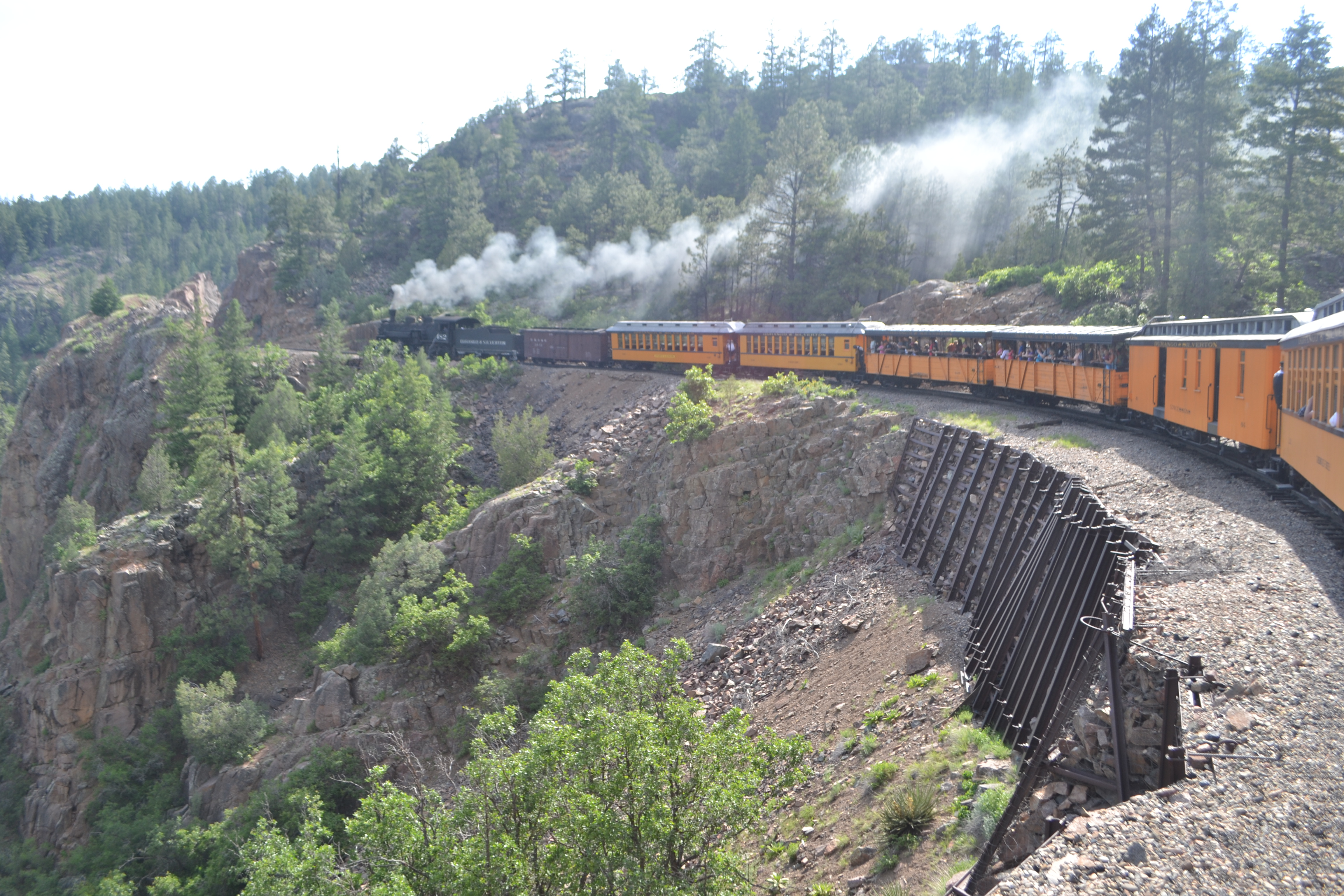 It is a long time since we have had coal soot in our eyes . When I was a kid when the steam passenger trains ran through Donald and we were going to Melbourne we would put our heads out the window and next thing we would be rubbing our eyes . Well guess what . In an open carriage and the engine climbing steeply up the Animas river valley in the San Juan National Park, We got covered in soot .