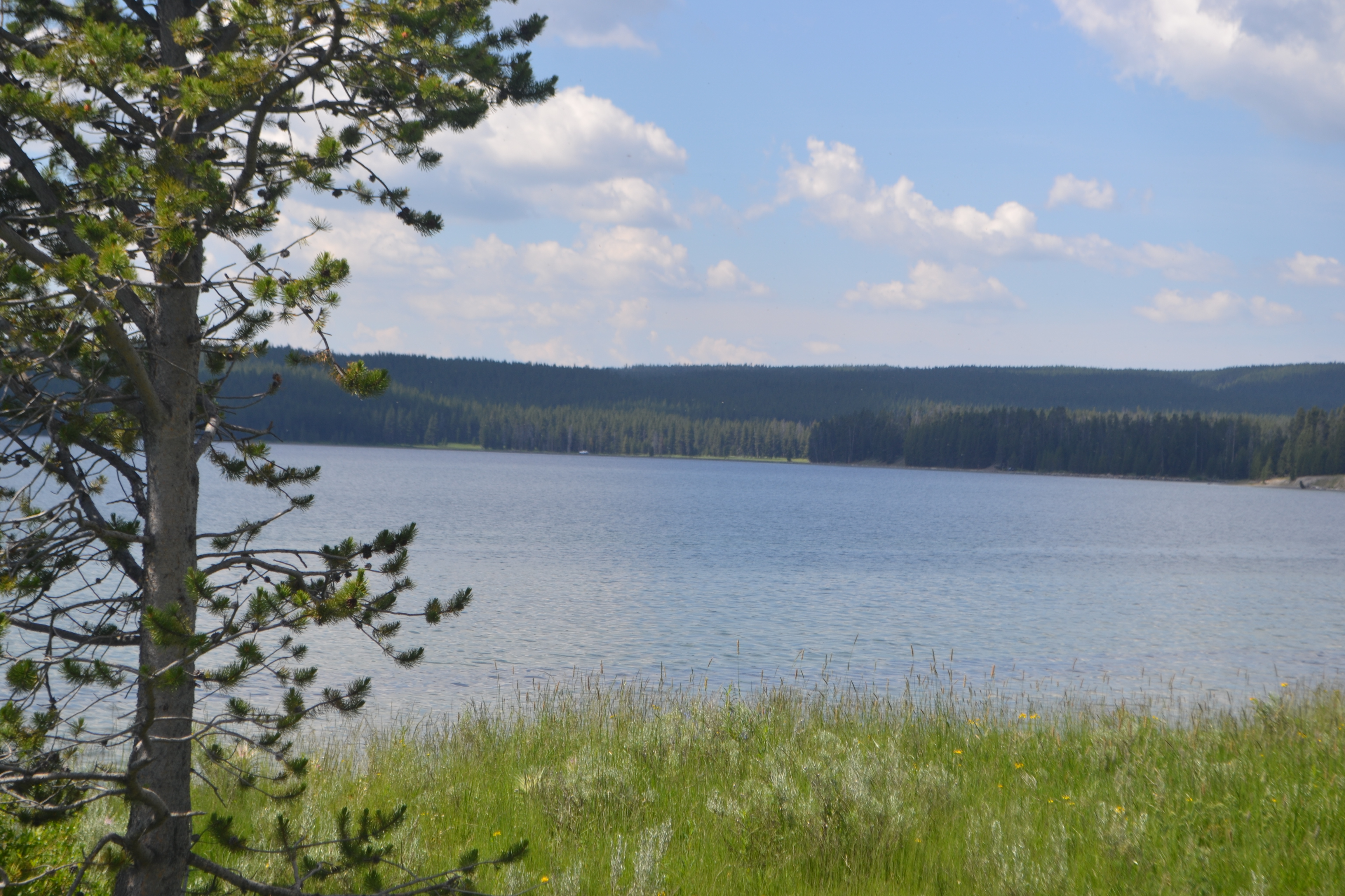 We followed the edge of the Yellowstone Lake for some miles, stopping for photos, wishing we could have just sat in chairs and just looked at it. Coming upon the Le Hardys Rapids, my first thought was puzzlement – shouldn’t the river be running the other way. `all the other rivers we have seen have gone south’ No, no – remember we saw `Continental Divide’ on a sign and then on the map. Of course, the rivers now run north. The Lake is 7,733 ft above sea level and now the river is dropping hence the rapids. Looking into the water, we could see the `cutthroat trout’ trying to swim the rapids to reach the head of the river to sperm.