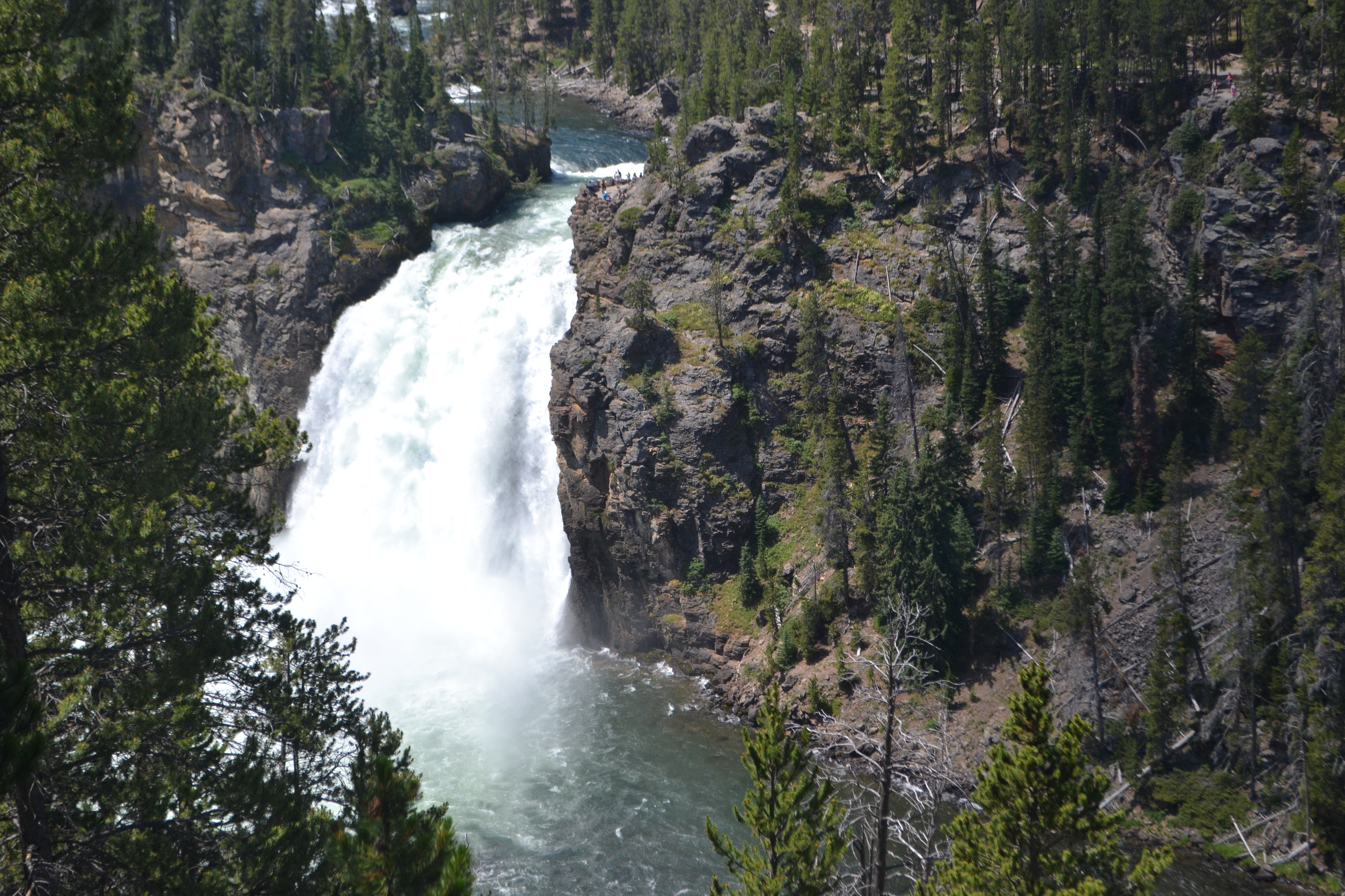 Ian wants to eat –wait wait we will look at these falls. No we will eat first! OK, Ok. We sat in the shade in the carpark and chatted casually to other tourists particularly to an irate gentleman ` You are parked in the wrong place!! We are in the RV section, where’s Ian? Next thing a big RV squeezed into a parking spot behind us and outpoured Japanese tourists and they kept coming more and more of them. We followed them and the waterfall on the Yellowstone River was a fabulous sight. 300ft drop. We moved around to the Lowerfalls and were surprised with the feature of this place. The canyon walls, `Artists Paintpots’ are brillant colours – reds, sandy buff, yellows – 500ft high. Unexpected surprise.