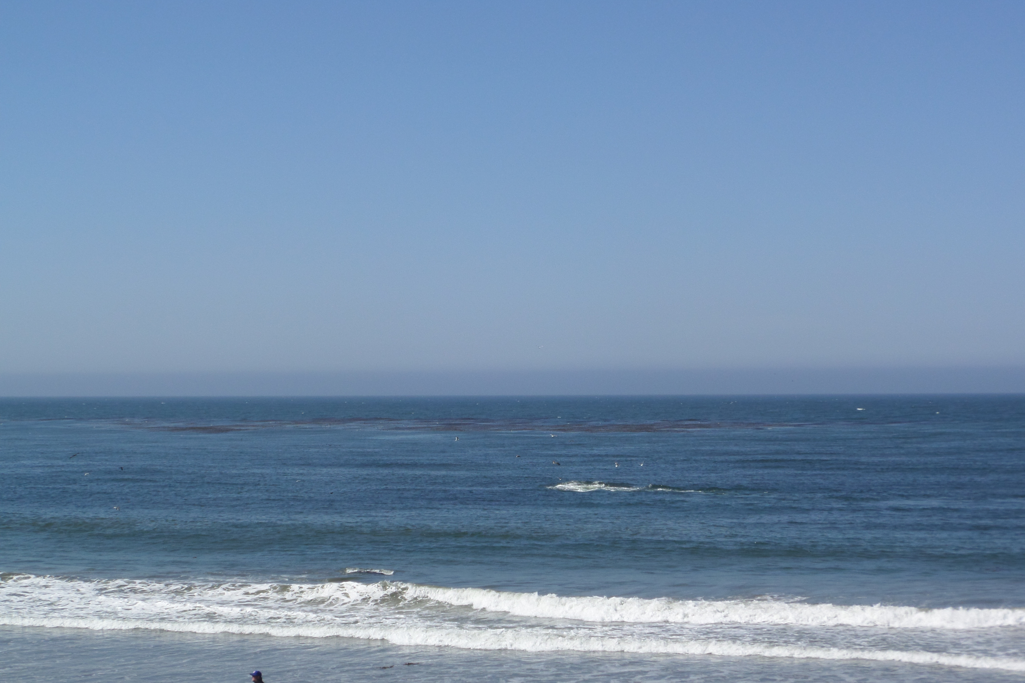 Without planning, we found this ideal motel right on the beach at San Simeon, southern region of Highway 1 . Actually, `resort` would be a better description. Our room opened onto an inner garden and swimming pool. Palms outside each room gave the garden a tropical feel. This morning we had our breakfast outside with the sun warming our backs. Following breakfast, I left Ian to walk on the beach. Just a short walk across the road and I was paddling through the edge of the breaking waves. Sun shining, blue sky and I thought I was in heaven. But the best was still to come.